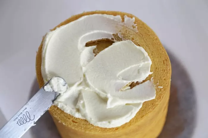 クリームはてっぺんから塗っていきます。お皿や台にクッキングペーパーを二枚に切って下に敷き、終わったら横に引き抜くと汚れなくて安心です。(3枚目の画像参照)出来上がった後からは動かせない(下からお菓子がこぼれてしまいます!)ので最終的に乗せたい台やお皿に乗せてデコレーションしましょう。