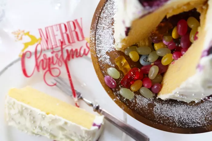 クリスマスは【無印良品の特大バウム】のアレンジでピニャータ(くす玉)ケーキ♪詰めて塗るだけ失敗しない!