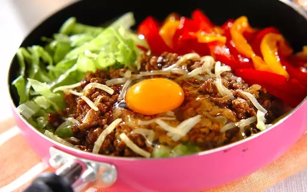 調理時間は10分! ワンパンで作れるチーズカレービビンバです。カレー風味で食欲増進も期待できます。レタスのシャキシャキとした食感も小気味良いアクセントに。パプリカのナムル、ピザ用チーズ、卵を盛ってカラフルに仕上げましょう。