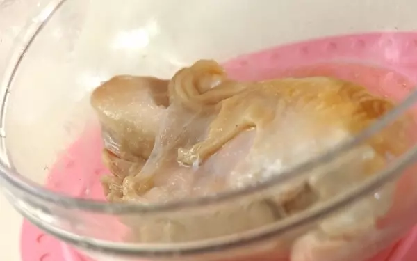 ・鶏むね肉はビニール袋に入れ、<調味料>の材料を加えて手でよく揉み、30分ほど置いておく。