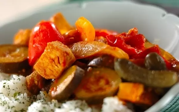 フランス南部の料理「ラタトゥイユ」とサラダチキンを使った豊かな風味のカレーです。フライパンひとつでパパッと作れて手間いらず。あっという間にトマトベースのカレーが完成します。最後にお好みで、ピクルスを添えましょう。ラタトゥイユは作り置きしておくと、グラタンやパスタの具としても使えますよ。