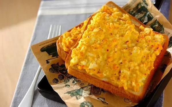 カニ缶を使ってタルタルソースを作り、パンにのせて焼いたシンプルな一品です。カニの風味とチーズのコクが混ざり合い、くせになる味。カニタルタルソースは茹でたブロッコリーにかけても美味です。