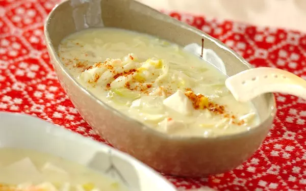 白菜のシャキッとした食感とカニの旨味が見事にマッチした中華風スープです。ショウガ入りで飲んでいるうちに、内側から体がポカポカと温まりますよ。優しい味で、濃いめの味つけの中華料理と好相性です。
