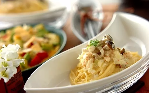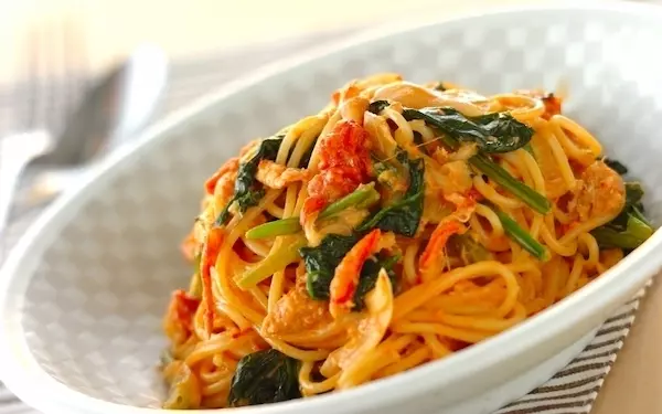 濃厚でクリーミーなカニ缶を使ったパスタもおうちで簡単に作ることができます。カニのほぐし身を使うとよりリッチテイストに。トマトクリームソースが具とよくからんで最後まで飽きずに食べられますよ。