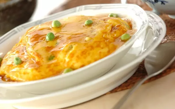 カニ缶と玉ネギの甘みがたまりません。簡単に作れるのに、満足度が高いのが魅力です。仕上げに、あんをかけ、刻みネギを散らしましょう。耐熱容器は少し高さが出るように、小さめの四角い型を使うのがベターです。