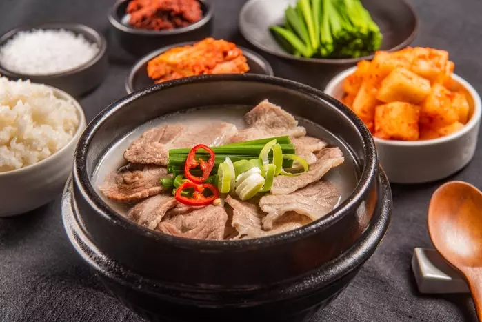 牛骨を煮込んだ「コムタン」ご飯と一緒にキムチやナムルと一緒に熱々を。