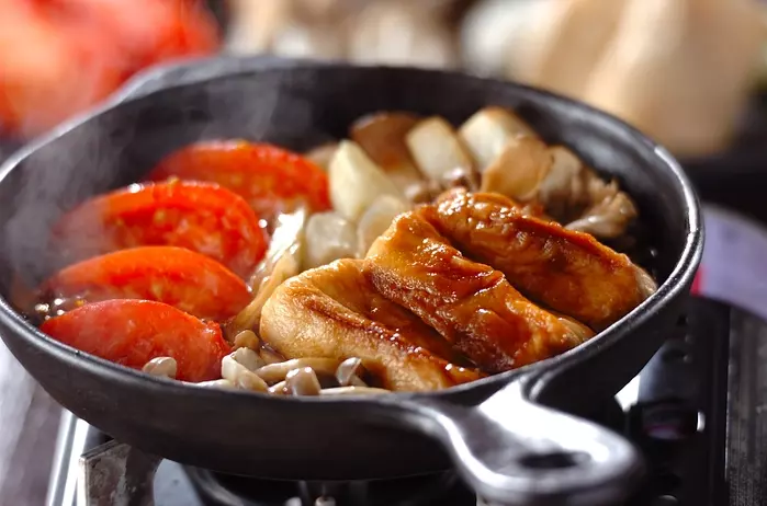 甘辛の割り下にトマトの酸味が加わって、サッパリした味は一度食べたら病みつきに。割り下に使う料理酒をワインに変えたり、春菊をクレソンに変えるなどアレンジも楽しいですね。