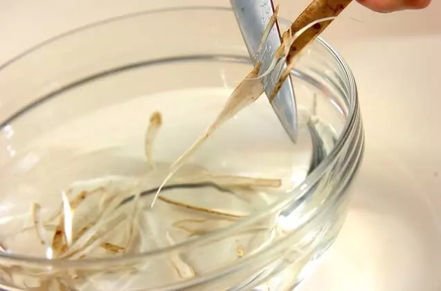 ささがきゴボウは、鉛筆を削るように回しながら包丁を入れていくと均一に作れます。セリとの相性が抜群です。味が染み込んだゴボウとお肉が残ったら、しぐれ煮のようにご飯に乗せるとたまらない味に。
