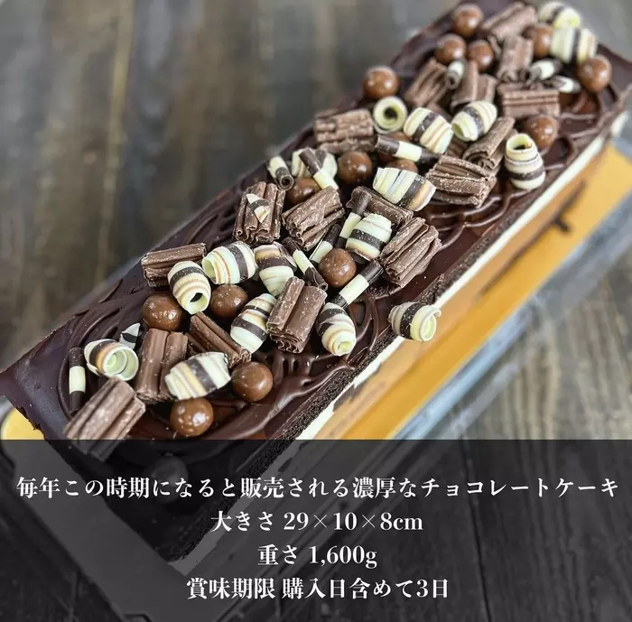 贅沢なほどのチョコレートがたっぷりのって、味のほうは濃厚。毎年少しずつアレンジされているようですが、「安定感のある大人味のチョコケーキで、今年もかなりおいしいです」といいます。