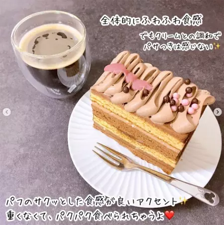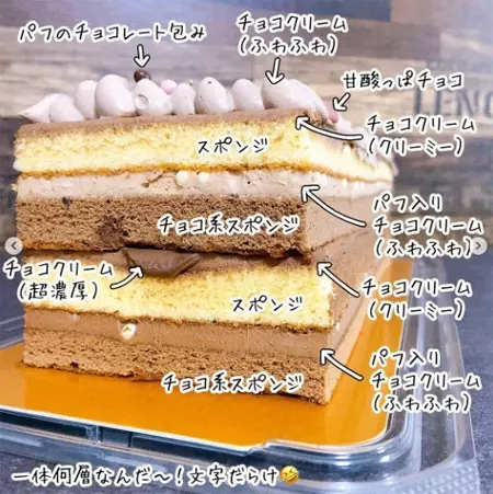 「見た目がチョコ尽くしなので、こってりずっしり濃厚系かなと思ったけど、スポンジもクリームもふわふわで軽め。真ん中のチョコクリームは特濃でした」といいます。