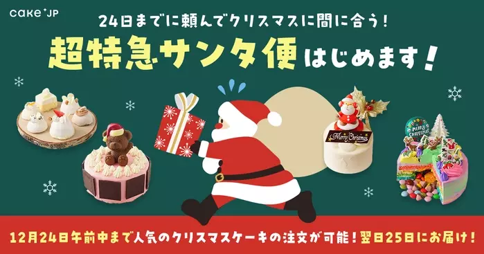 そんな方におすすめなのが、クリスマス前日の24日まで予約OKの通販サイトCake.jpのサービス「超特急サンタ便」。まだ間に合います!