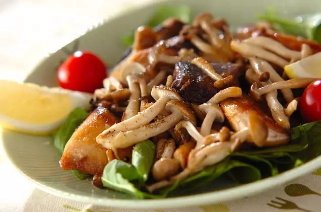 お肉のような食感のブリはあっさり塩だけも美味しいですが、力強いソースにも負けません。キノコたっぷりのガーリックソースで食べるブリは食べ応えのあるメインおかずに。お好みでバルサミコ酢を加えるとワインに合う一品に仕上がります。