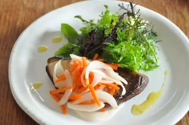 塩麹効果で身が柔らかく揚がったブリをカレー風味でエスニックに仕上げた唐揚げは、そのまま食べたりスイートチリソースをつけたりアレンジが楽しめる一品に。ビールのお供にオススメですよ。