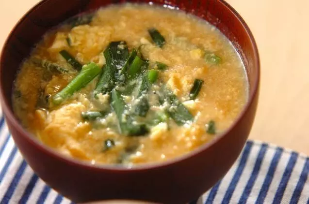 お酒を飲んだ後や、ちょっぴり食欲がない時にオススメしたい卵入りのニラタマみそ汁。そうめんを入れて煮麺にしても良いですね。