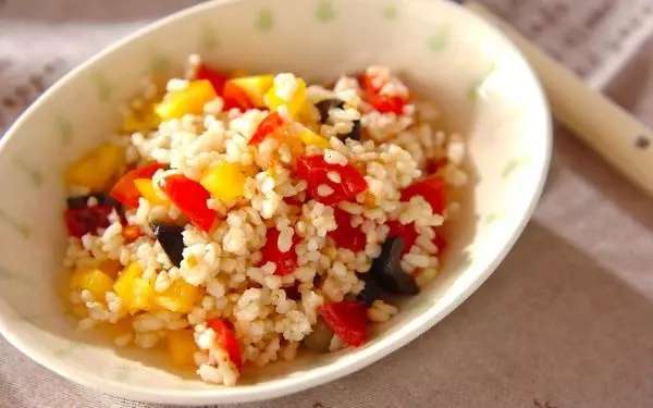 玄米を使った、ヘルシーなデリ風サラダはいかがですか? 玄米ご飯をサッと水洗いし、よく水気を切ってパラパラにしてから調理します。キュウリ、トマト、パプリカなど色鮮やかな野菜を使えば、見た目も華やかに。お好みで具材はアレンジしてみてくださいね。玄米ご飯にしっかりとドレッシングを和えることで、味がなじみやすくなります。