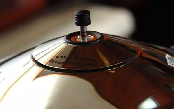 2、中火にかけてフツフツと音がしてきたら強火にし、圧力がかかったら1分ほどそのまま強火で炊く。さらに弱火にして15~18分炊き、最後に5秒位再び強火にし、火を止める。