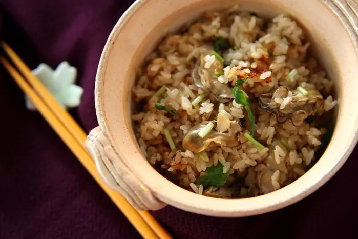 カキの旨味がご飯に染み込んだ炊き込みご飯。炊飯器で簡単に作れます。青菜のおひたしや味噌汁で栄養バランスがとれるので忙しい日に重宝しますね。カキの量はお好みで調整してくださいね。