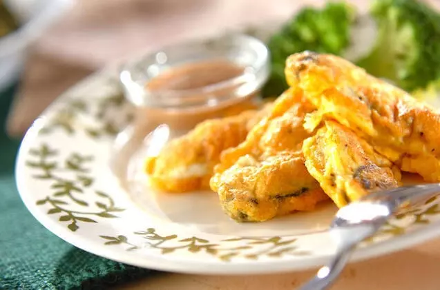 市販の天ぷら粉があれば簡単に作れるカキの天ぷら。サクサクの衣からジュワッとカキの旨味が溢れます。ポン酢に大根おろしを加えたつけダレや、レモンをキュッと絞って塩でシンプルに食べるのもいいですね。