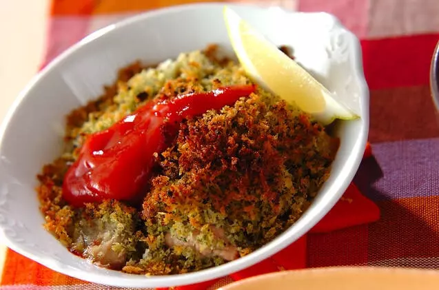 揚げ物はちょっと…という方には、カキにドライパセリをまぶしたパン粉まぶして焼くカキのパン粉焼きがオススメです。ピリ辛仕立てのケチャップに合わせて召し上がれ。