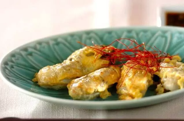 卵液を絡めてフライパンで焼く韓国料理のジョン。片面ずつ弱火で2〜3分焼くとカキの身がプリプリになります。ゴマ油入りの酢じょうゆにつけながら食べてくださいね。