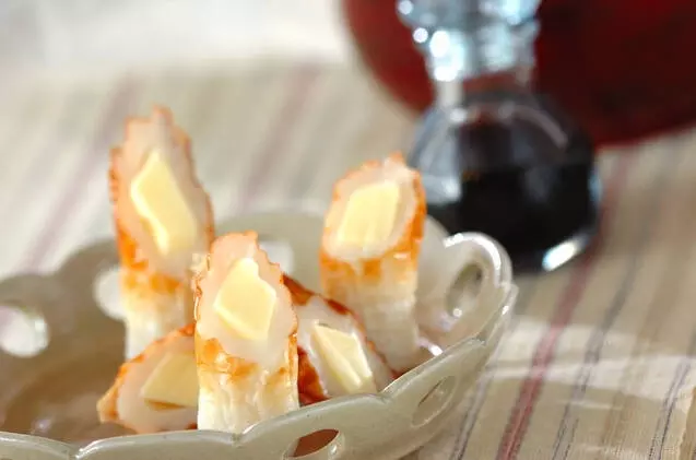 半分の長さに切ったちくわの中にチーズを詰めてカラッと揚げれば、食べ応えがUP!ウスターソースをお好みで添えましょう。お弁当にもおつまみにもおすすめです。