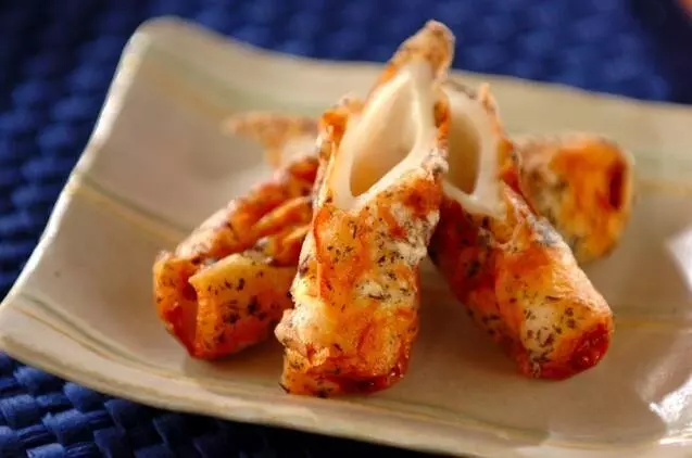 青のりたっぷり!サクサクおいしい、ちくわの磯部揚げ。お弁当のおかずにピッタリですね。あとを引く香ばしさが美味しい定番の1品です。