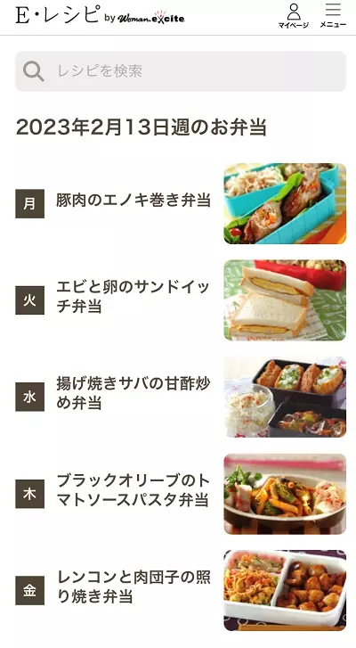 「E・レシピ」スマートフォンweb版、アプリ版には「お弁当」コーナーがあり、5000件以上のお弁当レシピを無料で見ることができます。