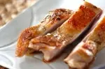 刻んだローズマリーを鶏もも肉にすりこんで香りをつけます。一口頬張ると、ハーブの香りがフワッと広がり、鶏肉の肉汁がジュワッとあふれ出し、たまらない美味しさです。食べやすい大きさに切ってから、お好みでしょう油をかけて召し上がれ! お酒のおつまみにも良さそうです。