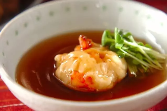 すりおろしたレンコンにエビを加え、ラップで包んで団子にし、レンジでチンで完成です。だしが効いたあんをかければ、料亭のような仕上がりに。レンコンのもっちりとした食感が味わえます。