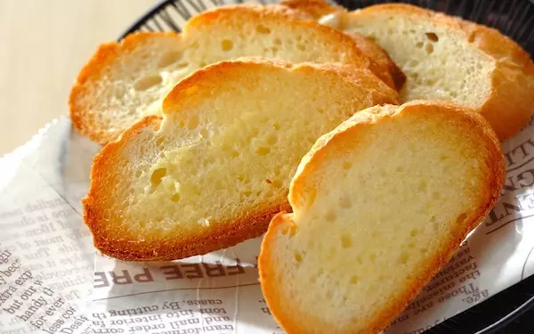 グラタンの主食と言えばパン! 特にガーリックトーストとはベストマッチします。こちらのレシピは、カリカリ食感でガーリックの風味がフワリと広がり、文句なしに美味しいです。簡単に作れるのもうれしいポイント。フランスパンはトースターで焼くと香ばしさが増します。