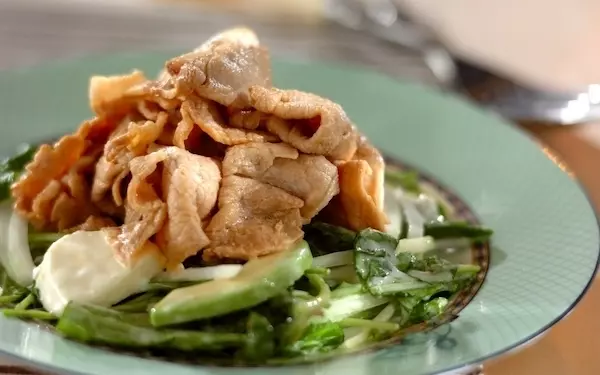 グラタンにサラダだけをプラスする場合、作りたいのがこちらのレシピ。ボリューム満点な豚しゃぶサラダです。モッツァレラチーズ、アボカド、ルッコラ、玉ネギを合わせて、洋風に。フレンチドレッシングと混ぜ合わせていただきましょう。具だくさんで食べ応えがありますよ。