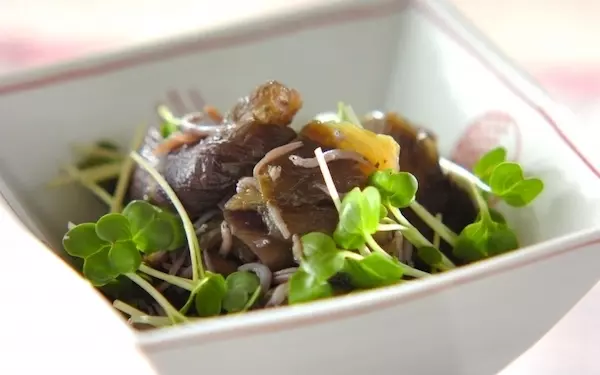 万能調味料「麺つゆ」を使って簡単に! 冷めても美味しいので、たくさん作って常備菜にしておくのもオススメです。最後に、貝われ菜を散らせば彩り鮮やかになります。ナスに調味料がしっかりしみ込み、グラタンの副菜としてはもちろん、ご飯との相性も◎です。