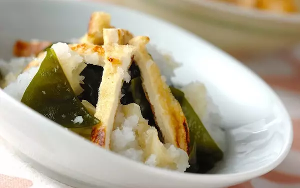 とろ〜りチーズが入ったグラタンには、さっぱりとした副菜もよく合います。ワカメと油揚げを大根おろしでいただきましょう。ワカメの歯ごたえもアクセントになった満足度の高いおかずです。箸休めにもなりそう。お好みで、しょう油をかけてからどうぞ。