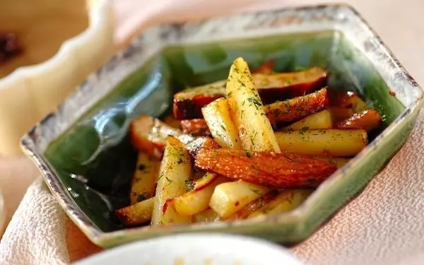 ユズの上品な香りがフワッと広がる炒め物。あっさりとしていて、濃厚なグラタンにも意外と合います。青のりを振ることで、風味がアップ。ジャガイモとさつま揚げを使ったおかずは、子どもからも大好評です。多めに作っておき、翌日のお弁当のおかずにしてもGOOD。