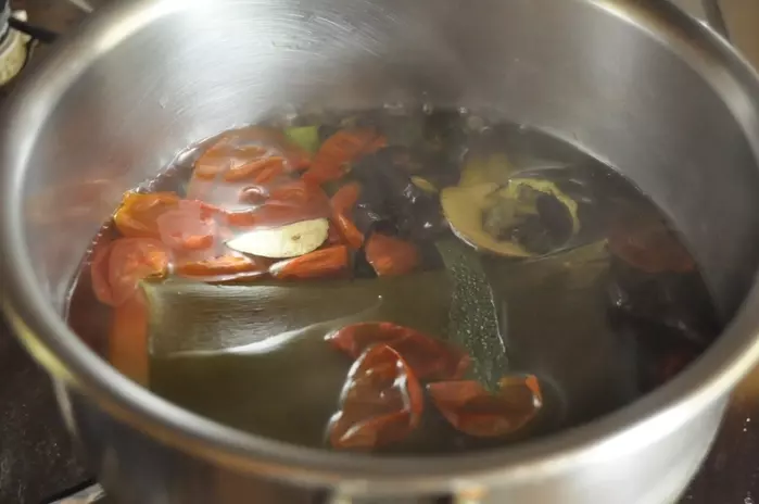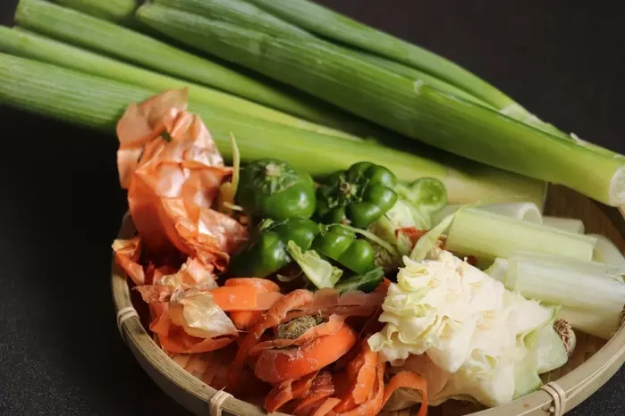 「ベジブロス」とは野菜の皮や根っこ、種やワタなどを使ってとる野菜だしのこと。料理の際に出る「くず野菜」や「魚の骨」「エビの殻」などは旨みや栄養が含まれていて、水と一緒に煮込むだけで美味しい出汁が出ます。