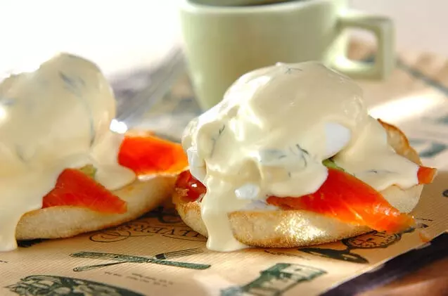 イングリッシュマフィンはサンドイッチだけでなく、オープンサンドでも使えます。沸騰したお湯にお酢を少し加えたらそっと卵を割り入れて半熟のポーチドエッグを作ります。マヨネーズに香り高いディルを加えておしゃれなおうち時間を楽しみましょう。