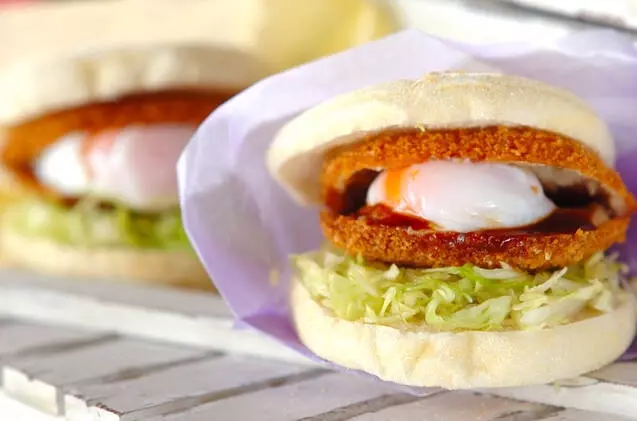 コロッケに切り込みを入れて温泉卵をサンドしたアイディアあふれる一品は、食べ応えバッチリです。コロッケと温泉卵はコンビニで手に入るので気軽に作れますね。テレワークのランチにも。