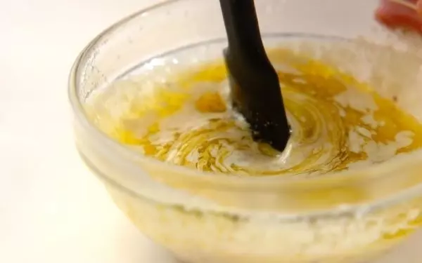 2、耐熱容器に<バーニャカウダソース>の材料を入れ、電子レンジで1分加熱する。一度取り出してよく混ぜ、さらに1分加熱する。