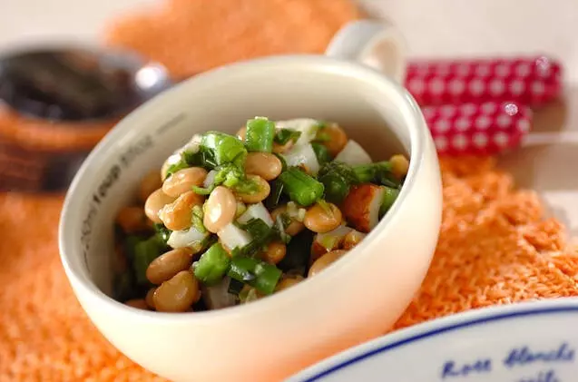 大豆にはイソフラボンが豊富なので、特に女性におすすめしたいサラダです。白ネギやシシトウ、細ネギをワインビネガーなどで合わせたドレッシングもぜひ手作りしてみて下さい。