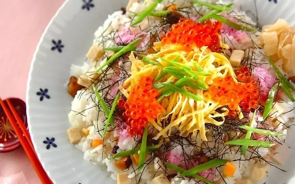 春の楽しみのひとつ「ひな祭り」。この日の定番メニューで食卓を彩ってみませんか? こちらのちらし寿司は具もトッピングも盛りだくさんで豪華。さまざまな風味を一度に堪能できます。高野豆腐とチリメンジャコの食感も美味しいアクセントに。子どもからも大好評です。