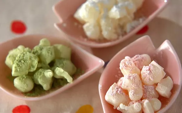 オーブンで焼いた切り餅に、ジンジャーパウダー、桜パウダー、抹茶パウダーをからめて、冷まします。そして、カラフルなこんぺい糖を飾りましょう。ひなあられを毎年、買っているという人も、今年は手作りにチャレンジしてみませんか? 自家製ひなあられは、香ばしくて美味しいです。