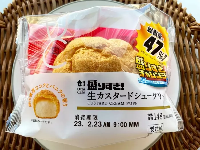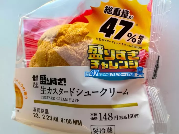 これは「●●すぎ!」を集めたチャレンジを続々と行っているローソンの「盛りすぎ!チャレンジ」第3弾。価格そのままでカスタードが47%増量された嬉しいスイーツなんです。
