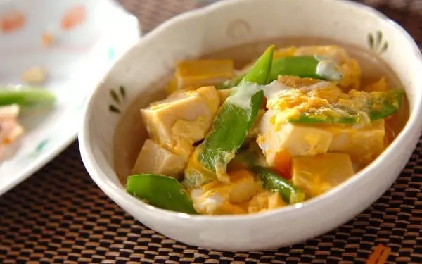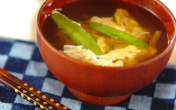 キヌサヤを使った、春らしいかきたま汁です。ふんわり卵×キヌサヤ・エノキの食感がやみつきに。どこか懐かしさを感じる味わいで、心も体もホッと温まりますよ。