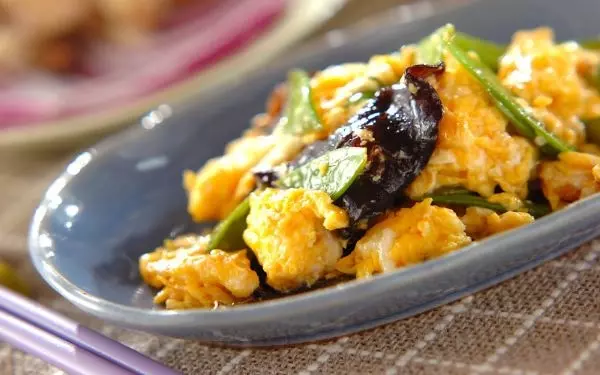 コリコリ食感のキクラゲとシャキシャキ食感のキヌサヤを、ふわふわの卵と炒め合わせれば完成です。ゴマ油の香りが食欲を刺激します。オイスターソースやしょう油で味つけした、一度は試したい中華料理です。