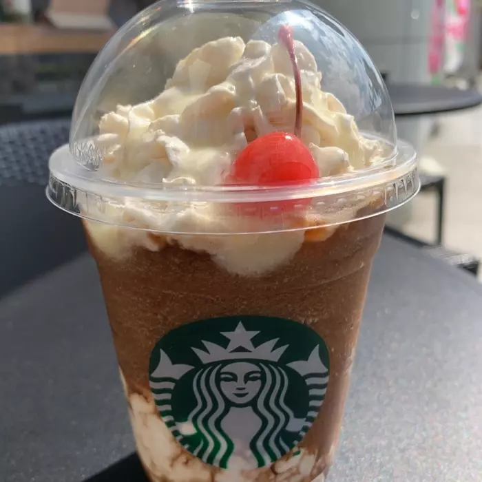 『スターバックス コーラ フラペチーノ』上と下のホイップクリームがいい仕事してます。