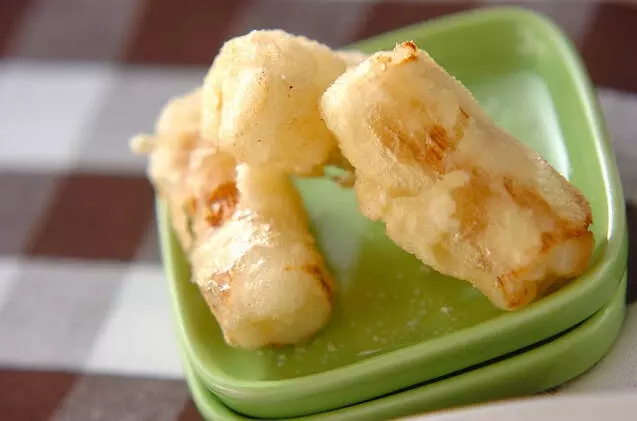 小麦粉と片栗粉に水を合わせてトロンとした生地を作ります。ネギを絡めて油でさっと揚げた天ぷらは岩塩でシンプルに食べましょう。そばやうどんのお供にも。