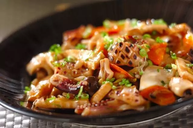 イカは切り込みを入れて炒める前にサッと茹でておきましょう。固くならずプリッとした食感が楽しめます。