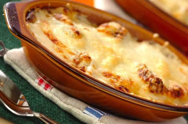 みそ風味のホワイトソースで蒸し焼きにした白ネギと鮭をグラタンに。鮭の代わりに牡蠣やマカロニをプラスして食べ応えをUPしても良いですね。和風テイストでホッとする優しい味わいです。