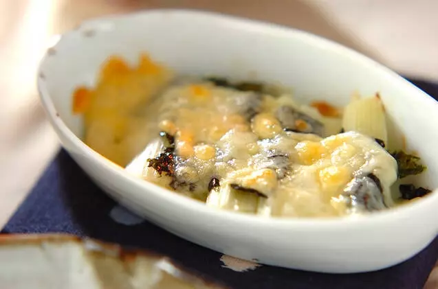 熱した白ネギのトロッとした食感がたまらないですね。韓国のりとチーズの塩気で味付けいらず。お酒を選ばず楽しめる簡単おつまみです。