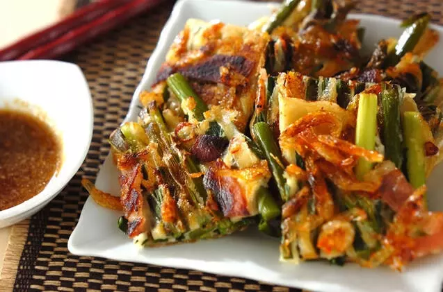 ニラの代わりに細ネギをたっぷり入れた食べ応え満点のチヂミです。ニンニクの芽も入れてスタミナ満点の一品に仕上げましょう。